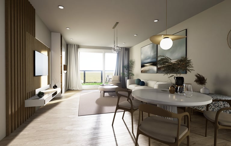Viviendas de obra nueva con espacios amplios, materiales de calidad y una estética contemporánea pensada para el bienestar diario.